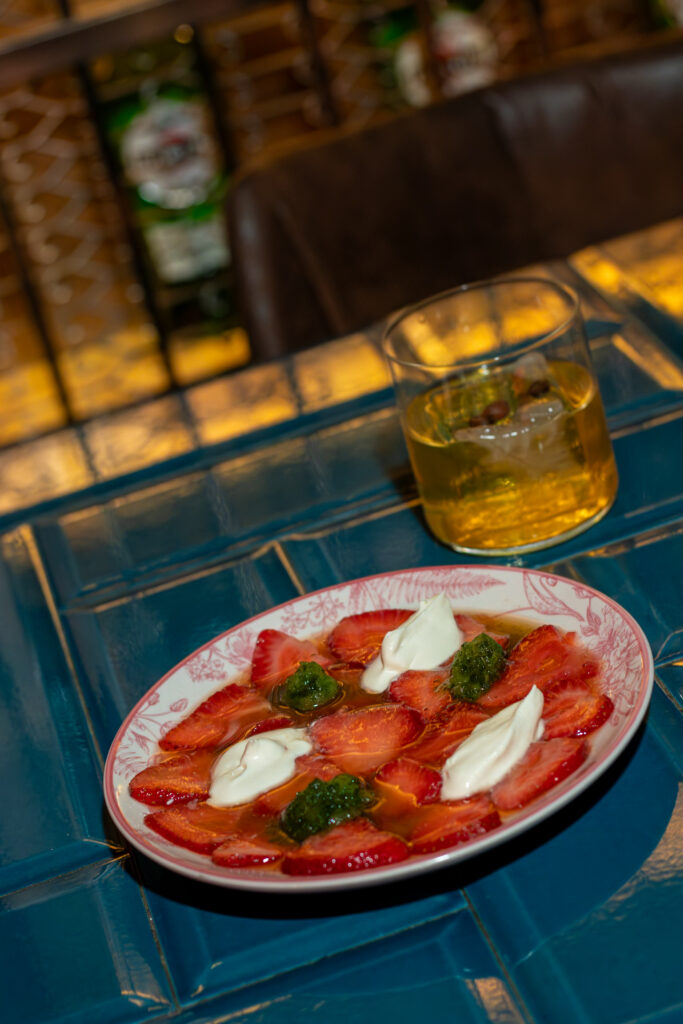 Y para cerrar, un postre pensado para refrescar y limpiar el paladar: Frutillas frescas presentadas con delicadeza, un final sutil que aterriza la experiencia y deja espacio para seguir degustando, conversando y, por supuesto, tomando buen cóctel.