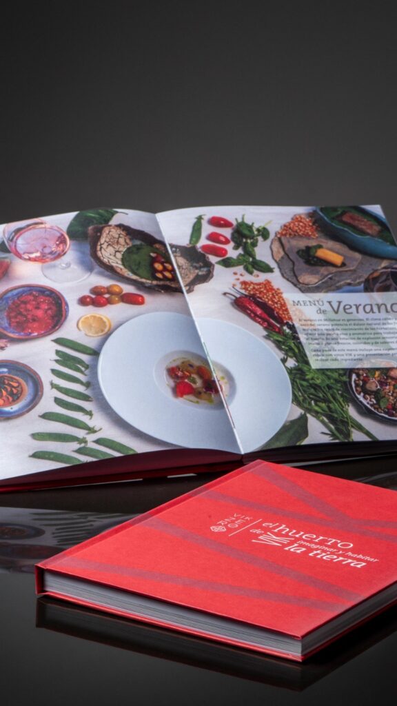 En ese recorrido, la publicación muestra cómo se concibe la cocina en espacios como VIK Zero, el restaurante agroecológico de la viña, donde los platos se construyen a partir de ingredientes cultivados y cosechados en su propio huerto de dos hectáreas. La estacionalidad, el uso de productos orgánicos y una cocina mayoritariamente vegetal definen una forma de trabajo que queda reflejada en estas páginas.