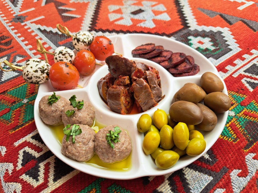 Entre los platos más reconocibles para el público local está los Rellenos, verduras como ají, papa, hojas de parra rellenas con especias turcas y con carne o carne vegetal; el Falafel con pasta de yogurth griego y pepino, y el Shawarma o döner kebab, en su nombre original, preparado con capas de hummus, vegetales frescos, cebolla con sumac y carne, pollo o versión mixta. Una preparación generosa, equilibrada y llena de matices.