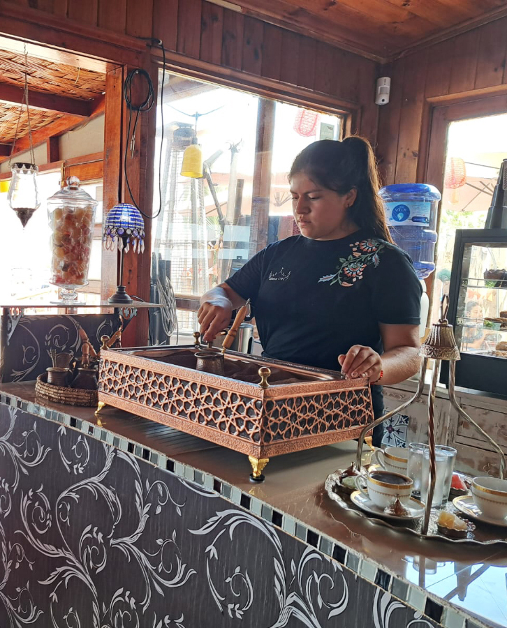 Ese anhelo tomó forma en Guanaqueros hace un año, donde Ema decidió emprender y dar vida a este proyecto que no es sólo una cafetería, sino que es una experiencia cultural. Desde la decoración hasta la vajilla, muchas de las piezas fueron traídas directamente desde Turquía, incluyendo loza, teteras, tazas y textiles adquiridos en el Gran Bazar. Cada rincón del local busca transportar al comensal a otro lugar, sin perder la cercanía y calidez del servicio local.
