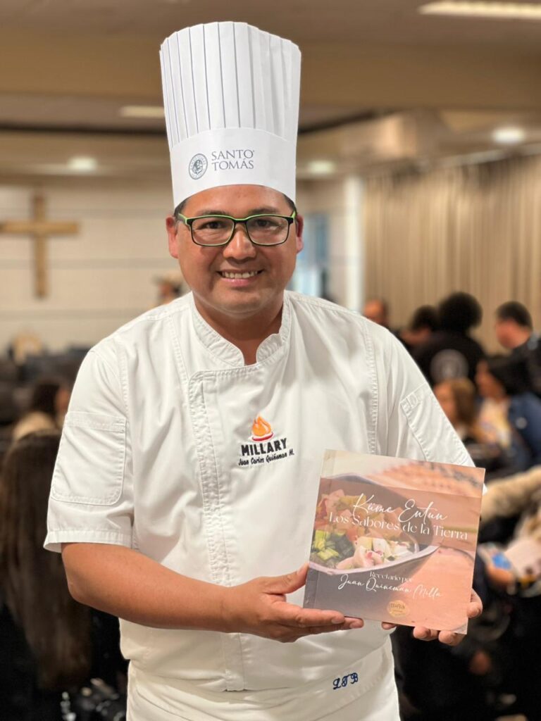 Acompañado por académicos y alumnos de comunicación y diseño del Instituto Profesional Santo Tomás, se lanzó oficialmente el libro de recetas del chef Juan Quiñeman con prólogo de Sonia Montecino. Un recorrido por la historia familiar y profesional de Quiñeman que, a su vez, permitirá difundir la diversidad de cocinas mapuches de costa a cordillera.