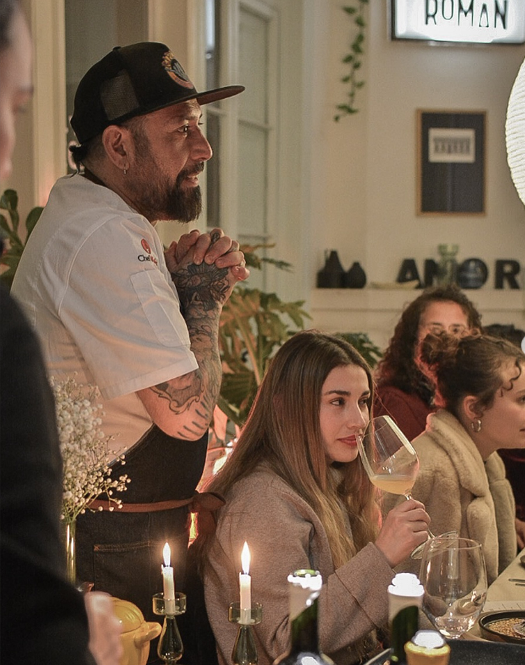 Sebastián Baeza es un chef chileno con una trayectoria marcada por el viaje, la disciplina y la búsqueda constante de identidad. Desde temprano decidió desarrollar su carrera fuera de Chile, entendiendo la cocina como un lenguaje cultural y una forma de conocer el mundo. Su formación se forjó en cocinas exigentes y diversas, donde aprendió que la técnica, el rigor y el respeto por el producto son tan importantes como la sensibilidad y la historia que hay detrás de cada plato.