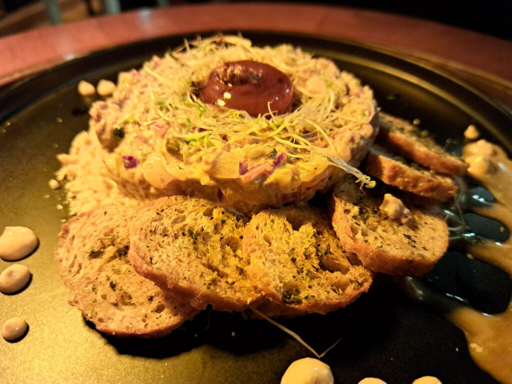La propuesta gastronómica es acotada y coherente con la barra: platos pensados para acompañar, compartir y no robar protagonismo al cóctel.
